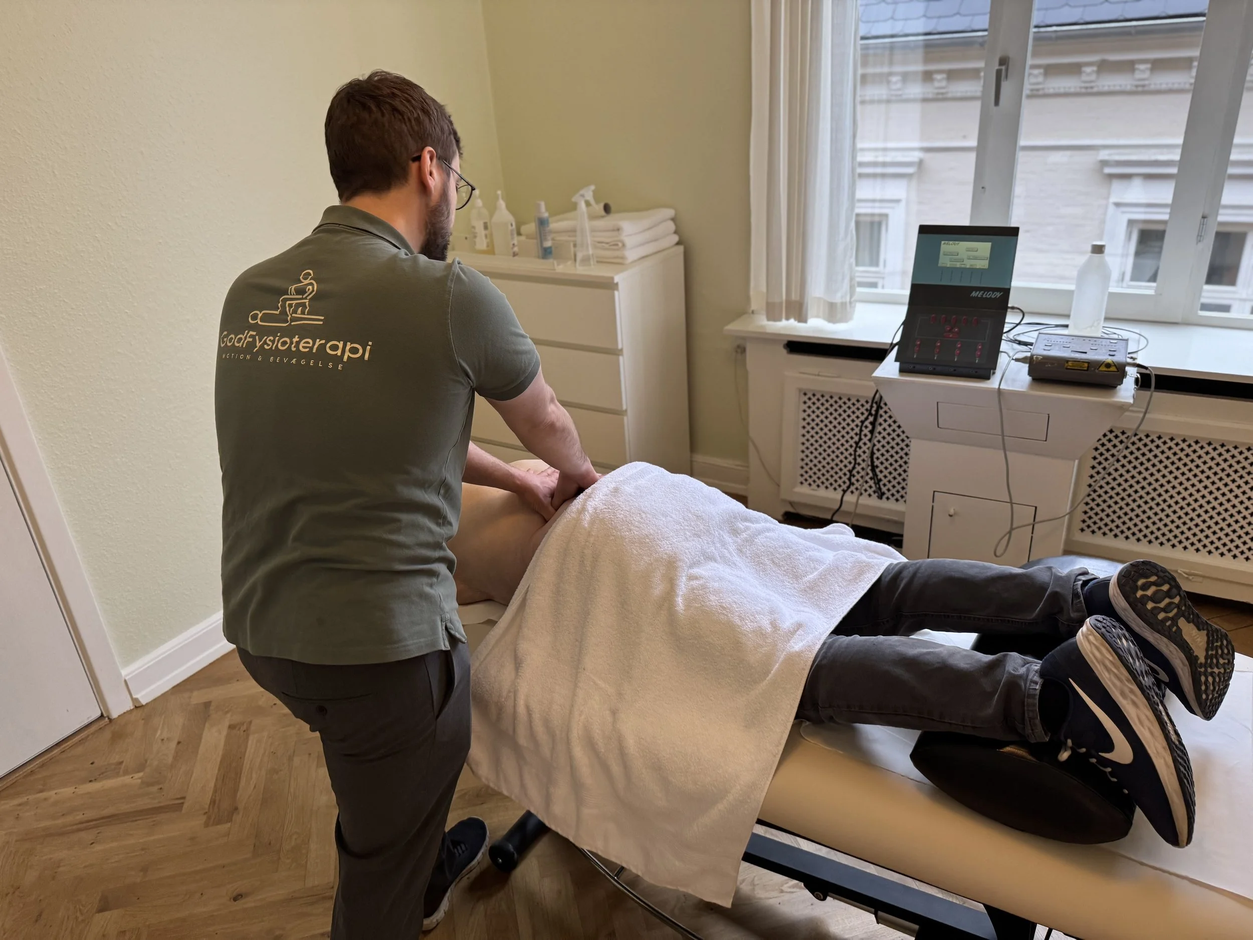 En behandling hos en fysioterapeut baseres på en grundig undersøgelse og analyse af patientens bevægelighed, muskler og led,